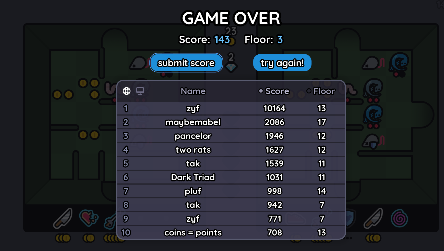 update: probably top 11 score using that same strategy, just eventually ran out of money to stay safe from the hordes :mouse: